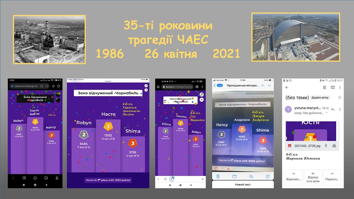 26 квітня минуло 35 років із дня трагедії на Чорнобильській АЕС. З метою вшанування роковин катастрофи в Україні, усвідомленого розуміння учнями події та її наслідків Центр професійного розвитку педагогічних працівників м. Львова запропонував виявити рівень знань про Чорнобиль, його минуле, сучасне й майбутнє.