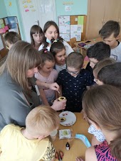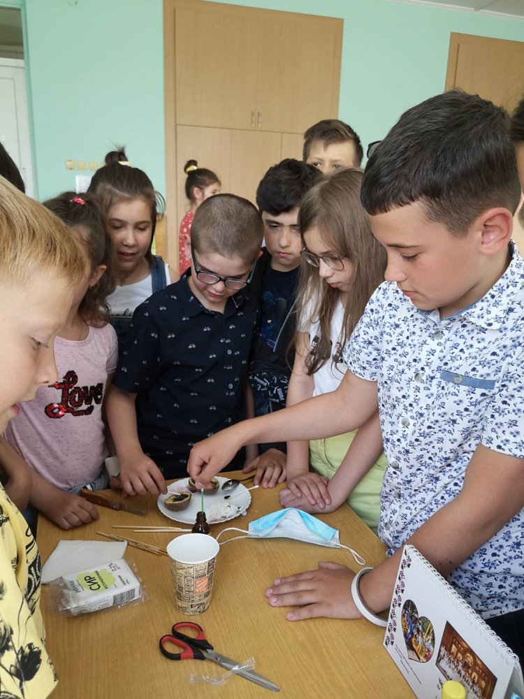 У 4-В кл. було проведено цікаве інтегроване заняття про йод. Під керівництвом соц.педагога Андрух Анни провели експеримент щодо виявлення неякісних продуктів, багатих на крохмаль, малювали блискавки та смайлики для профілактики йододефіциту. А медсестра Каліцинська Г. нагадала, як правильно обробляти рани йодом та іншими антисептиками, обробила незначні подряпини в бажаючих. Наголосили про правила поведінки на відпочинку у літню пору: діти мають бути обережними під час дозвілля, аби не знадобилося використовувати йод.